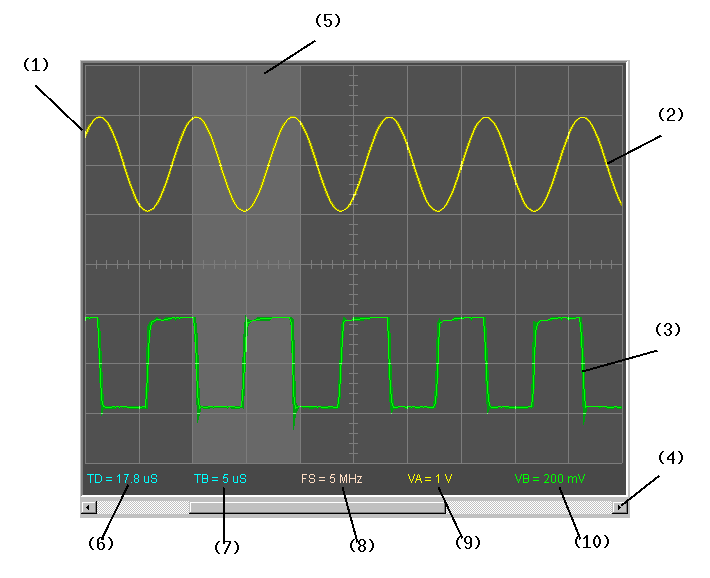 - Zoom Band: indicates where the zoom timebase will operate (when enabled).